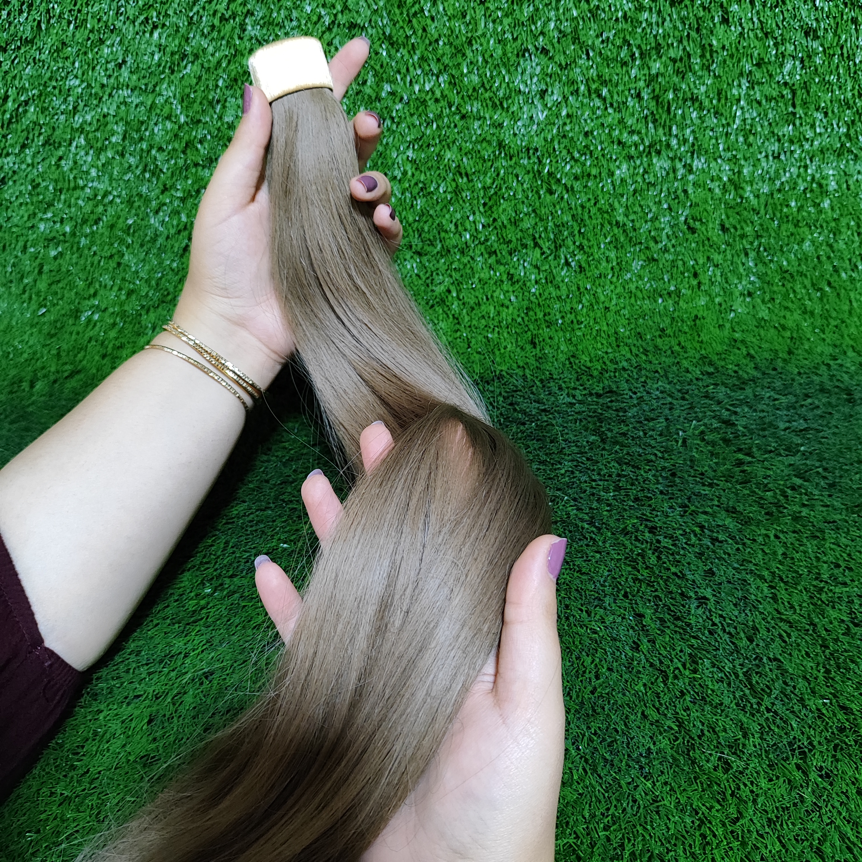 توجه : موهای طبیعی انسان بعد از بریده شدن خاصیت رنگ پذیریشون کمتر شده و ممکنه به پایه ی بلوند نرسن(اگر رنگ موی روشن مدنظرتون هست بهتره موی بلوند تهیه کرده و رنگ ساژ کنید)